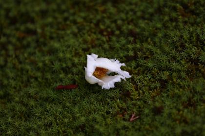 2022年6月15日撮影昨日咲いた苔の上に落ちた花。本日、近畿地方は梅雨入りしました。