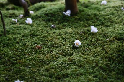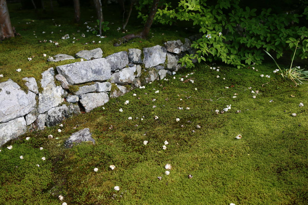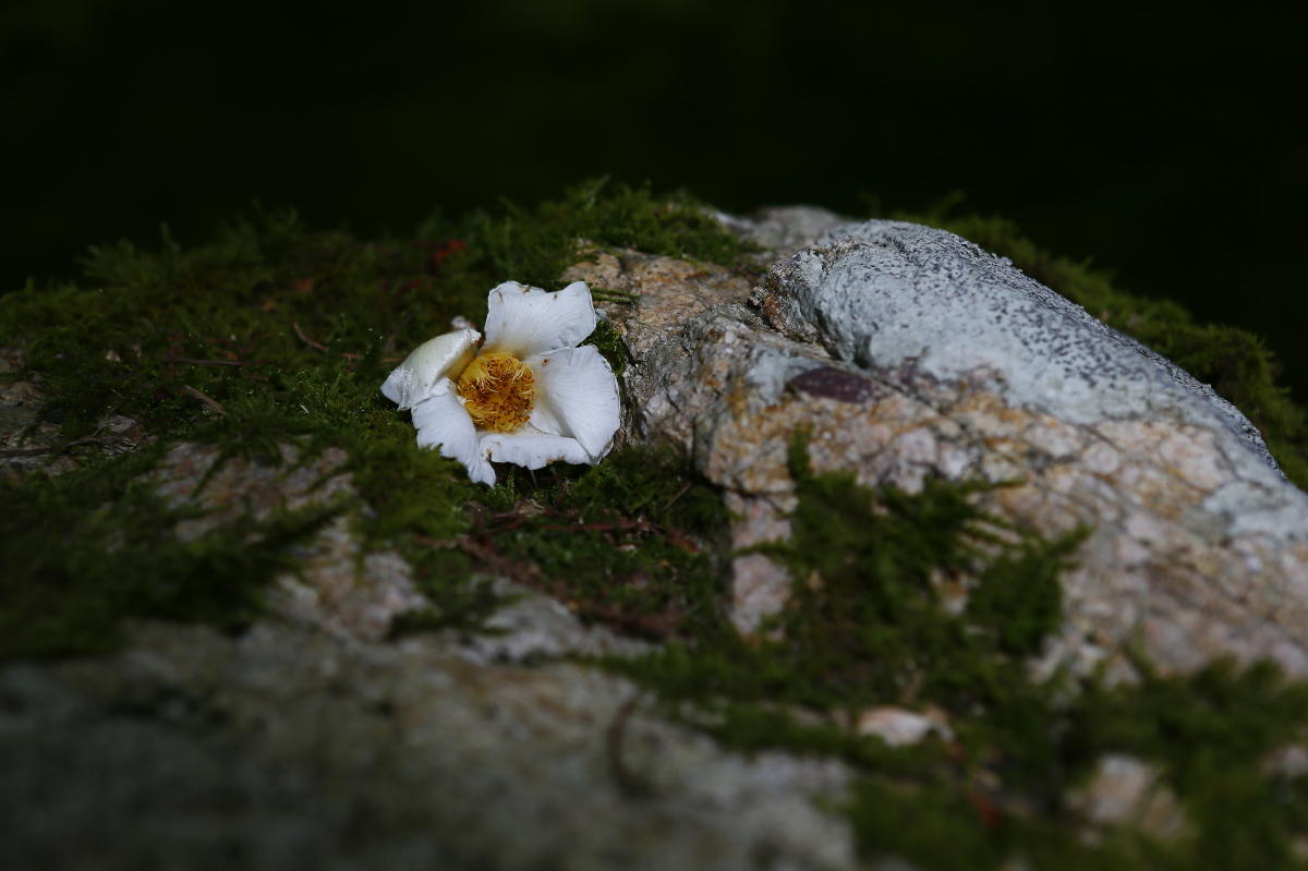 2024年6月23日撮影スギゴケの上に落ちた花。